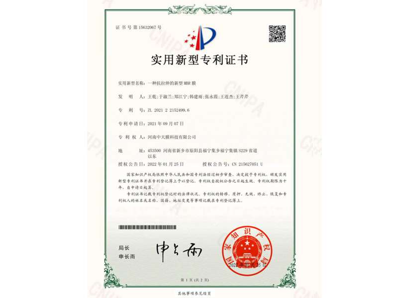 證書號(hào)第15632067號(hào)實(shí)用新型專利證書