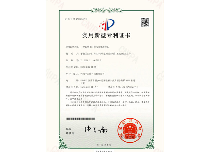 證書(shū)號(hào)第15188947號(hào)實(shí)用新型專(zhuān)利證書(shū)
